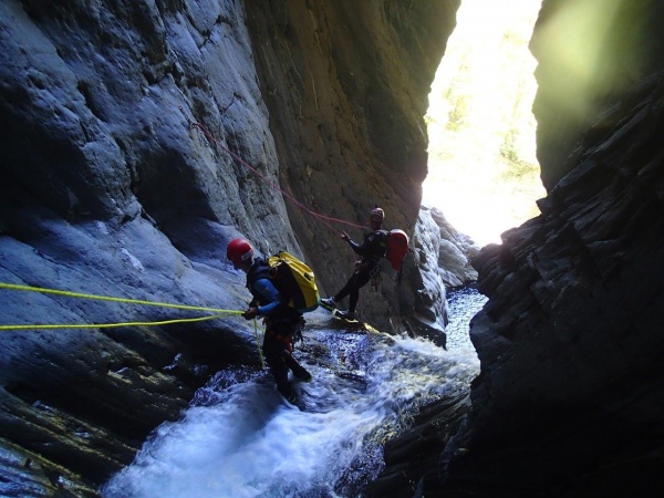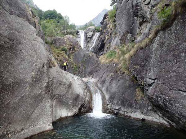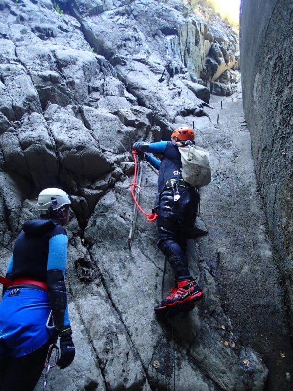 Dimanche, les six réunis se lancent dans le canyon de Rasiga supérieur, une jolie gorge profondément taillée dans le gneiss, comme les aime François. Le groupe sortira tardivement de ce canyon exigeant et ne regagnera le camping qu’à la nuit.