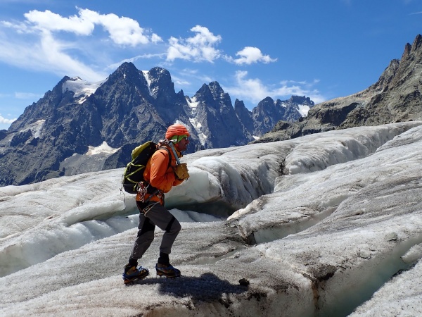 David Vigouroux le 6 juillet 2022 sur le glacier Blanc (Formation Instructeur Alpinisme)