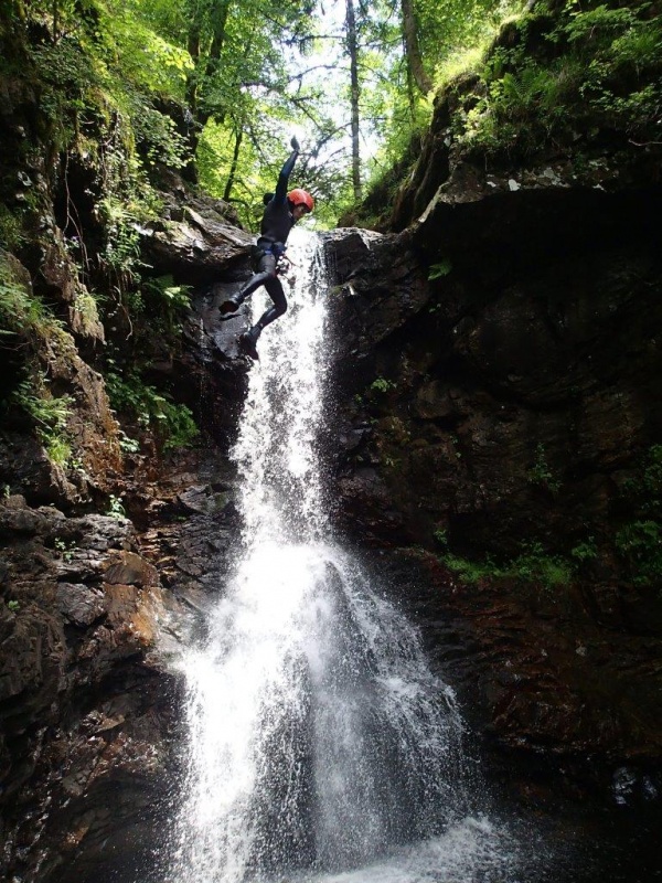 Nous terminons ainsi ce canyon dans cette grande vasque qui nous permet, grâce à une plateforme à 7 m sur le côté, de tenter un dernier saut. Nous pouvons même sauter depuis un petit rondin de bois juste au-dessus de l’eau. Bref, canyon vraiment super sympa qui a ravi tout le monde !