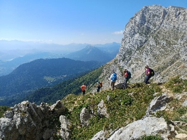 Trajet en minibus Villars-de-Lans - Télécabine de la station (cote 2000). Conformément à la CSV réalisée, le groupe décide de deux itinéraires : ascension vers le pas de l’Oeille et sentier vers le col Vert. Repérage pour l’itinéraire du vendredi matin. Randonnée : 14 km, D+ 720 m, D- 1200 m.