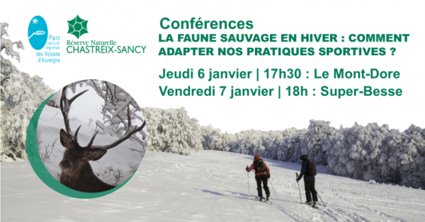 Amanda Prime, chargée de mission à la Réserve naturelle de Chastreix-Sancy, adressera cette question dans une conférence tout public, gratuite, qui se tiendra à deux dates : le jeudi 6 janvier à 17h30 au chalet du Sancy au Mont-Dore et le vendredi 7 janvier à 18h00 au cinéma Le Foyer à Besse. Amanda nous apportera des notions supplémentaires sur les méthodes de survie des espèces en hiver, sur la manière dont elles exploitent les milieux naturels et sur les gestes que nous pouvons adopter dans nos pratiques sportives hivernales pour limiter son dérangement.
