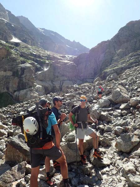 Après plusieurs péripéties et des refuges complets dans les massifs du Mont-Blanc, de la Maurienne et de la Vanoise, nous voici partis samedi 28 juin dernier en direction des Écrins pour une course essentiellement glaciaire dans le but de valider les compétences "perfectionné alpinisme".