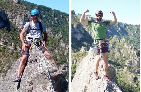 Le lendemain, changement de décor ! Nous nous rendons dans les gorges de la Jonte, deux voies pour trois cordées : d’un côté Suprême-Leader avec le tombeur et Véro, de l’autre, deux binômes : Jésus et le beau gosse, suivi de la taupe et du Sergent-Instructeur.