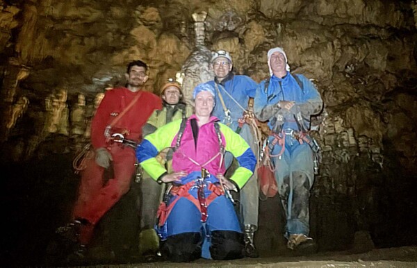 Nous formons deux équipes, la seconde passant par la deuxième voie constituée de petits puits qui nous permettent de réaliser une boucle et de nous croiser au fond de la cavité...