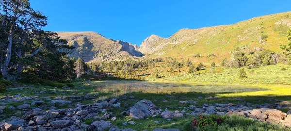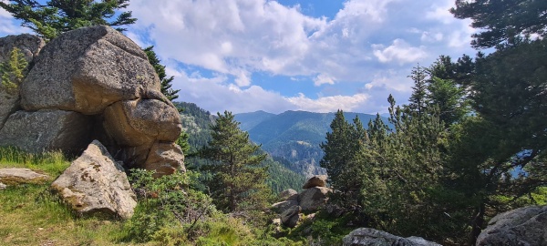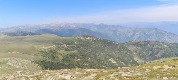 La seconde journée nous mène vers le Puig des Sept Hommes et le Pla Guillem. Les pentes sont parsemées de petits genêts très odorants et nous pouvons admirer le Pic et ses environs. La menace des nuages et de possibles orages nous font rebrousser chemin et rentrer prématurément au refuge de Mariailles.