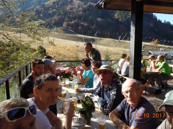 Une fois redescendus, nous nous retrouvons tous sur une terrasse pour partager nos impressions et le verre de l’amitié. Nous profitons encore de la très belle vue sur le val de Courre. Quelle belle journée !