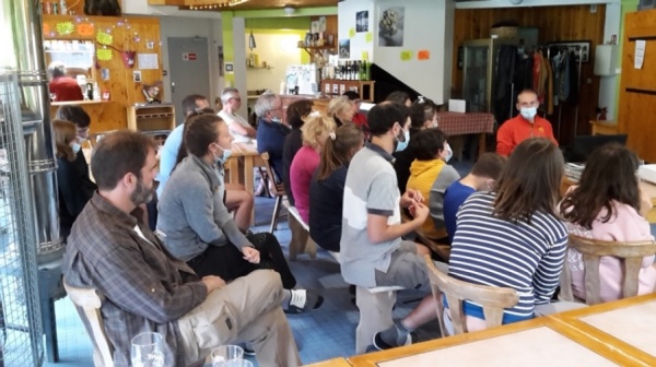 Tout en dégustant un apéritif offert par le club, nous visualisons un diaporama complet et très pédagogique sur la faune de nos montagnes. Désormais, nous saurons reconnaître un criquet d'une sauterelle, un chamois mâle d'un chamois femelle. Des clients du chalet, non inscrits à la journée mais très intéressés, se joignent à la présentation. Patrick répond avec plaisir aux questions.