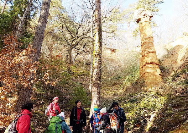 Ce dimanche 26 janvier, la sortie initialement prévue en ski de rando nordique s'est transformée en randonnée pédestre sur la commune de Saint-Diéry. Nous nous donnons donc rendez-vous à Cotteuges sur la place du village aux alentours de 9 h 30. Après une brève présentation entre nous, nous nous dirigeons vers la cheminée de fée afin de voir cette formation qui est surprenante de par son isolement et sa taille