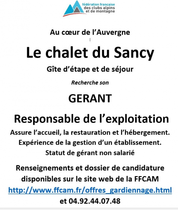 Recrutement du gérant du Chalet du Sancy Vie du Club Rédigé par AlainC-f09 le 28/05/2018 Publié par AlainC-f09 le 30/05/2018 0 commentaire Pour accéder directement au dossier , cliquer sur CHALET du SANCY
