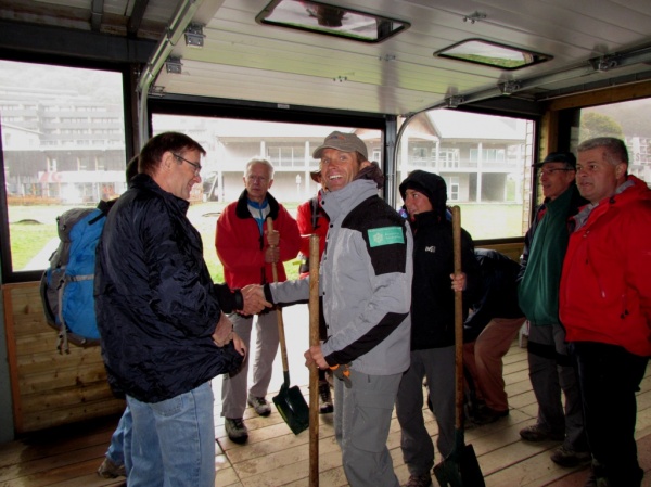 Les passants nous encouragent. Le funitel, dont la gratuité nous est gracieusement accordée par le directeur de la station, nous emmène à pied d'oeuvre.