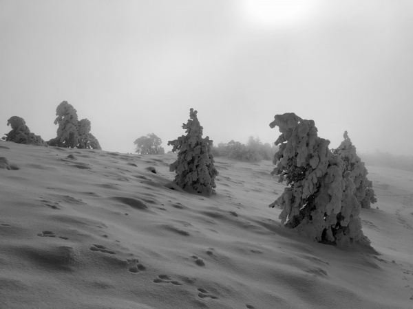 Notre journée se termine en forêt avec des sous-bois où les arbres croulent sous la neige.