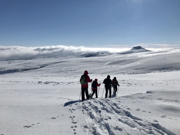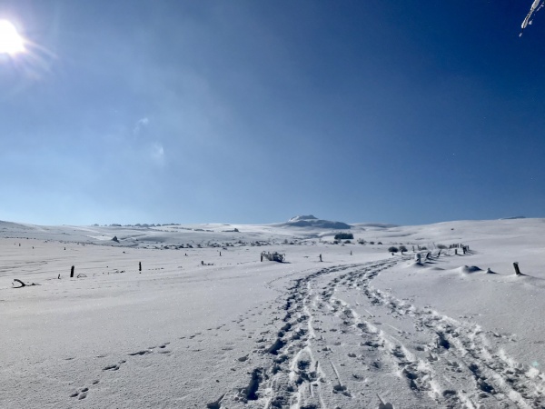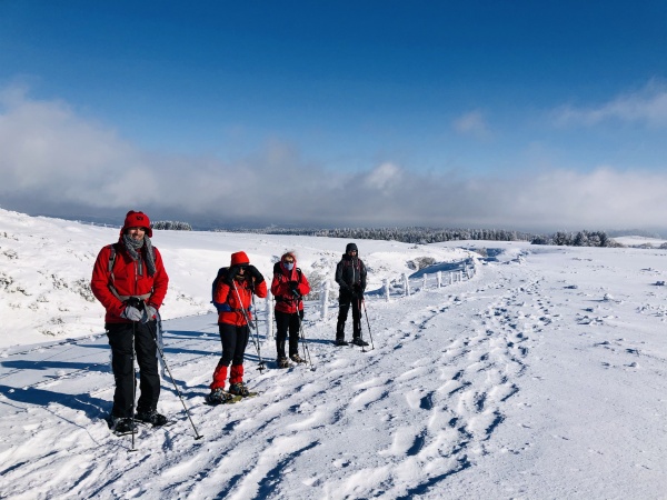 Sous un temps plutôt très frais et un petit vent habituel pour les Auvergnats (assez représentatif d’un vrai mois de janvier), notre petit groupe s’élance à partir du gîte de Courbanges.  La neige abondante cette année nous permet de découvrir de nouvelles randonnées.