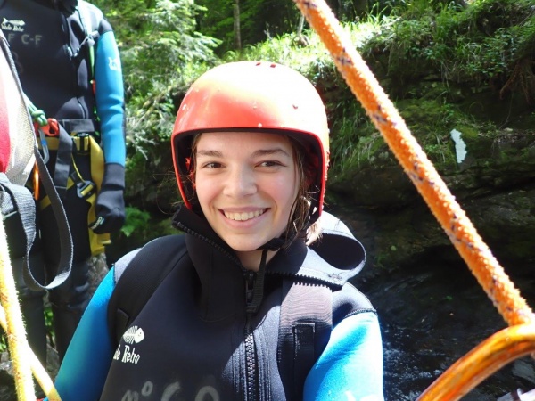 Nous arrivons sur place sous un ciel aussi menaçant que le propriétaire du terrain permettant d'accéder au canyon. Ce dernier reste l'ami des randonneurs mais pas des pratiquants du canyoning car Julien et Franck, partis en éclaireurs, ont essuyé un "no pasarán" ferme et doivent chercher un accès secondaire par le chemin forestier. Après un détour par le "haut Cornillou", peu pratiqué habituellement, nous arrivons finalement au premier passage : Albert équipe le premier rappel, Julien la main courante pour remonter et nous pouvons enchaîner descentes en rappel et sauts. C'est aussi l'endroit parfait pour un pique-nique réparateur et nous poursuivons notre descente avec saut obligatoire. Deux hauteurs possibles, même pour Amandine !