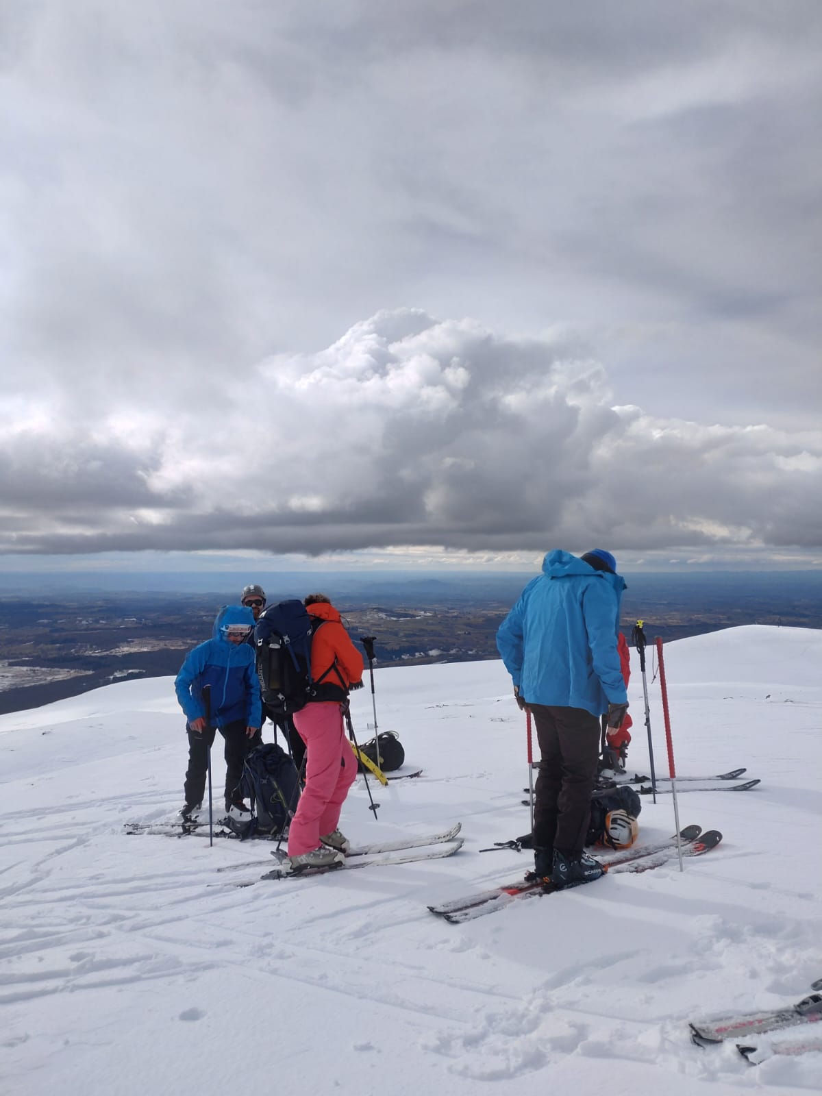 Nous repeautons et terminons notre cheminement jusqu'au mont Redon avec encore un magnifique point de vue. Puis dépeautage : nous apprenons l'astuce de garder les peaux sur les épaules… et c'est parti !