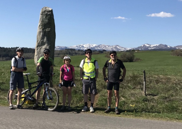 Didier nous ménage : pour monter sur Zanières, il nous fait prendre un trajet très progressif. Nous ne perdons pas de temps à chercher le 22 à Zanières (clin d’œil à Fernand) et, en ce lieu, Raoul nous quitte pour être de retour chez lui à l’heure du déjeuner. Chemin très roulant pour aller jusqu’à Pierre Longue, menhir qui a été redressé : arrêt pour prise de photos.