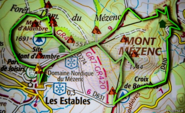 Direction ouest pour tenter de vaincre les 1691 m du mont d'Alambre. Toute l'équipe parvient à atteindre le sommet. Un grand tour de 270 degrés autour de cette montagne par la Croix de la Plonge nous permet de rejoindre notre hébergement aux Estables.