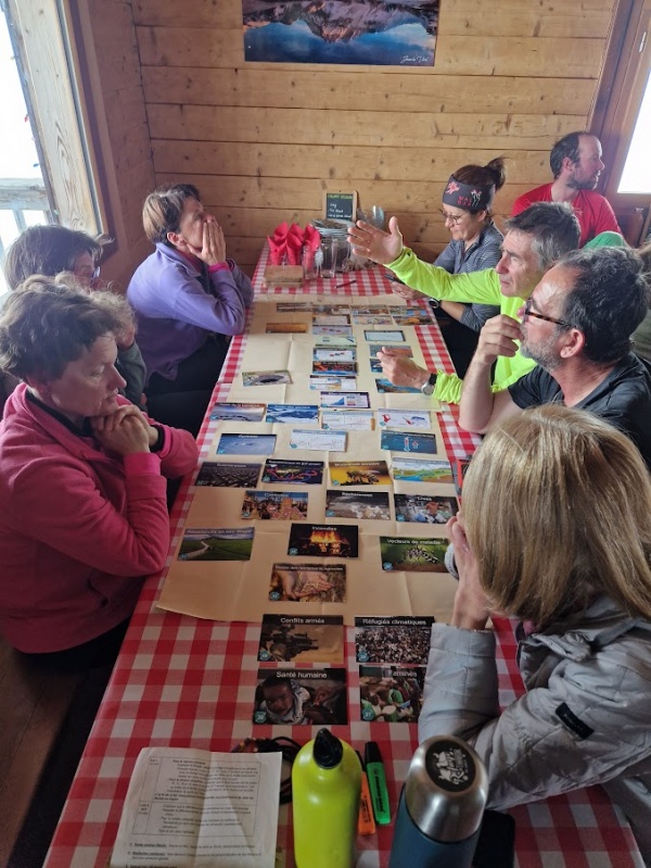 Retour au refuge à 14h45, nous avons tenu un bon rythme. Ce retour de bonne heure nous permet de nous reposer et de débuter une fresque du climat sous la houlette de Sophie Fostier. De nombreux débats s'en suivent avant de nous restaurer lors de notre dernière soirée.
