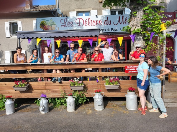 En fin d’après-midi, Antoine et Corentine annoncent qu’ils ont croisé une petite vipère dans "Oliver de Peur" (tu m’Elton, John !)… Ce qui n’empêchera pas des courageux d’aller se finir dedans ! Le temps de tout remballer, et on se rejoint tous au café du village pour une bonne bière, bien méritée !! (et 3 kg de sucre, pour Nathalie – confitures obligent !).