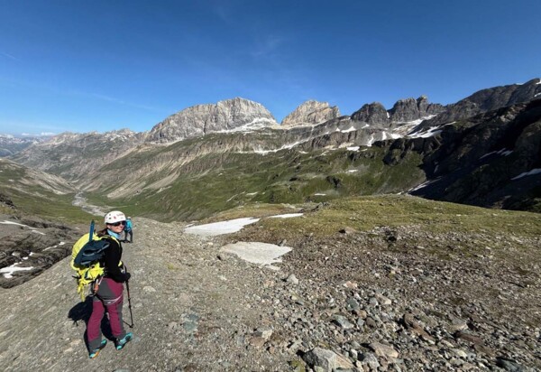 Une petite désescalade nous attend avant d’arriver dans la vallée.