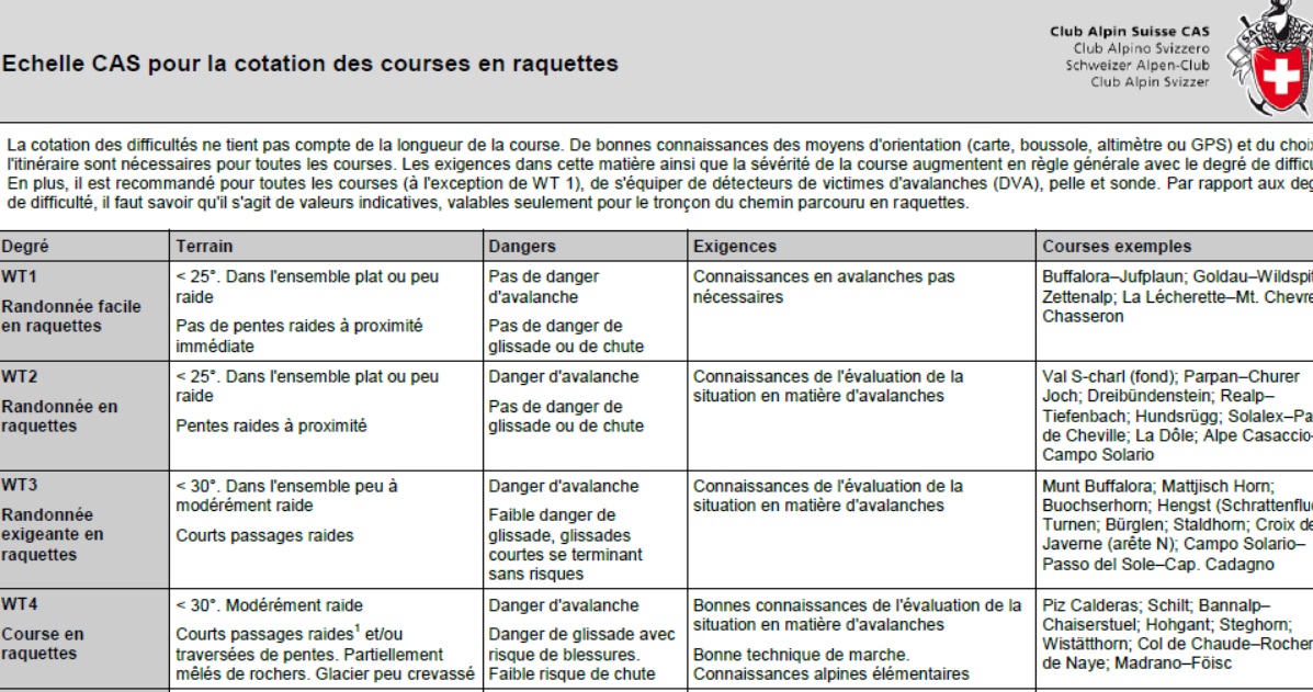 Vous trouverez le niveau recommandé par notre fédération FFCAM, qui est celle du CAS (Club Alpin Suisse). (cliquez ici pour télécharger le PDF).