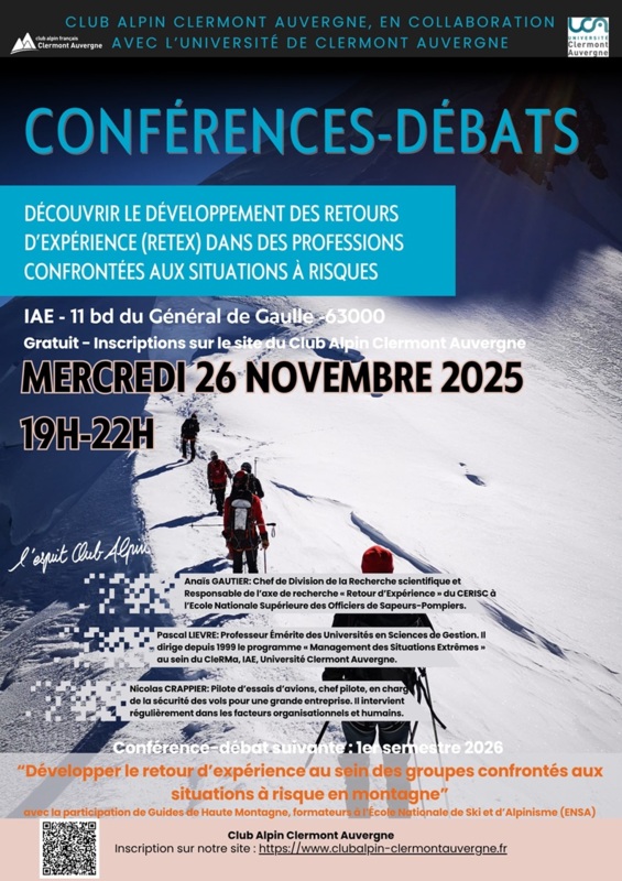 organisée par le Club Alpin Clermont Auvergne en collaboration avec le laboratoire CLERMA de l' IAE School of Management, université Clermont Auvergne (UCA)