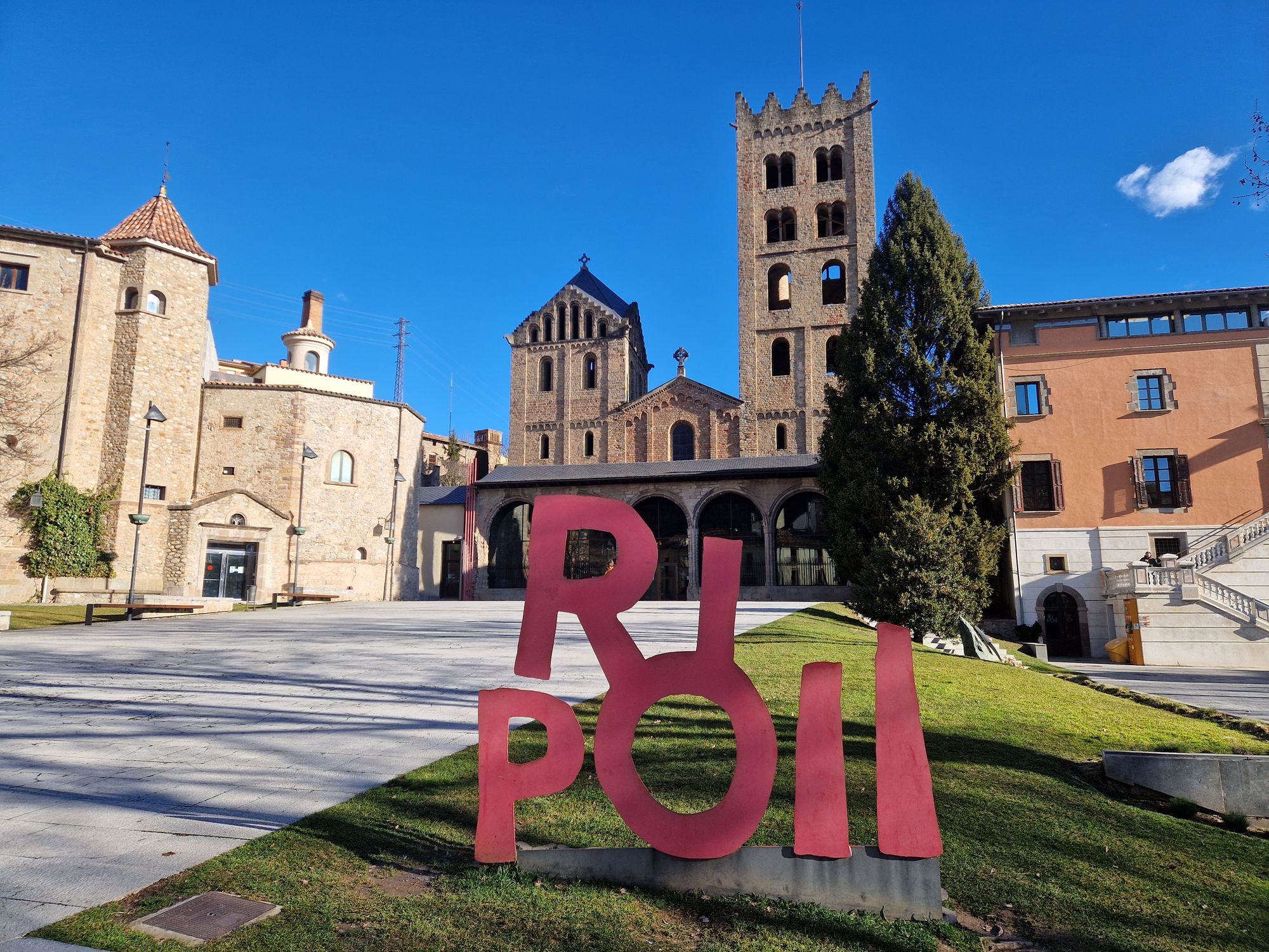 Le jeudi, les Pyrénées-Orientales sont en alerte rouge pour cause de vents violents. Pas de raquettes ce jour. Comme évoqué la veille au repas du soir, nous nous dirigeons vers l’Espagne et visitons des villages typiques : Ripoll et son monastère, Sant Joan les Fonts, Castellfollit de la Roca, Besalú.